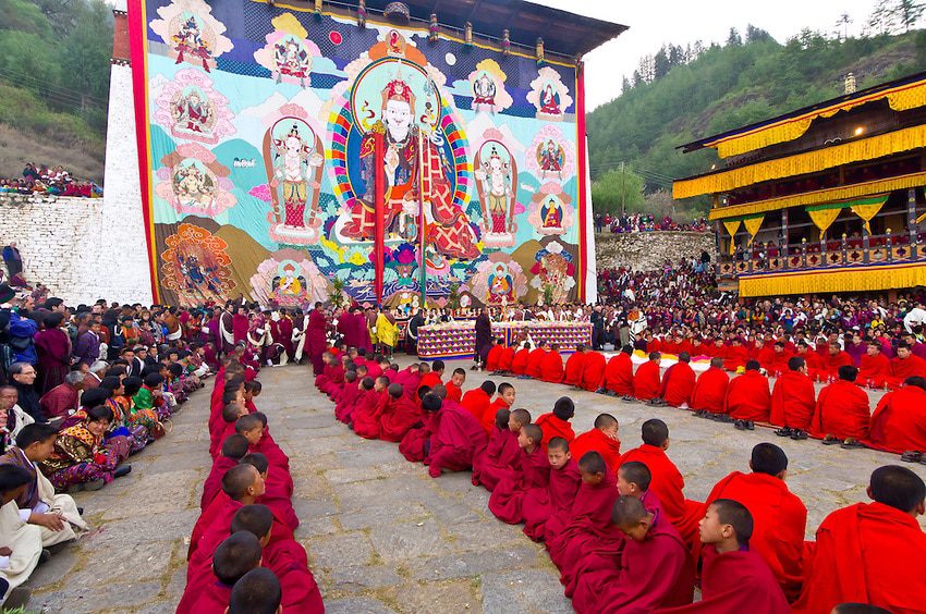 在最后一天黎明前,当僧侣们揭开巨大的唐卓(Thongdrel)--一幅高耸入云、刺绣精美的佛教唐卡--的面纱时,您将看到节日的高潮。成千上万的不丹朝圣者身着最精美的传统袍服和基拉,怀着虔诚的心情聚集在一起,他们相信,只要看到这幅神圣的杰作,就能洗清一生的业障,并确保在未来的生命中得到启迪。